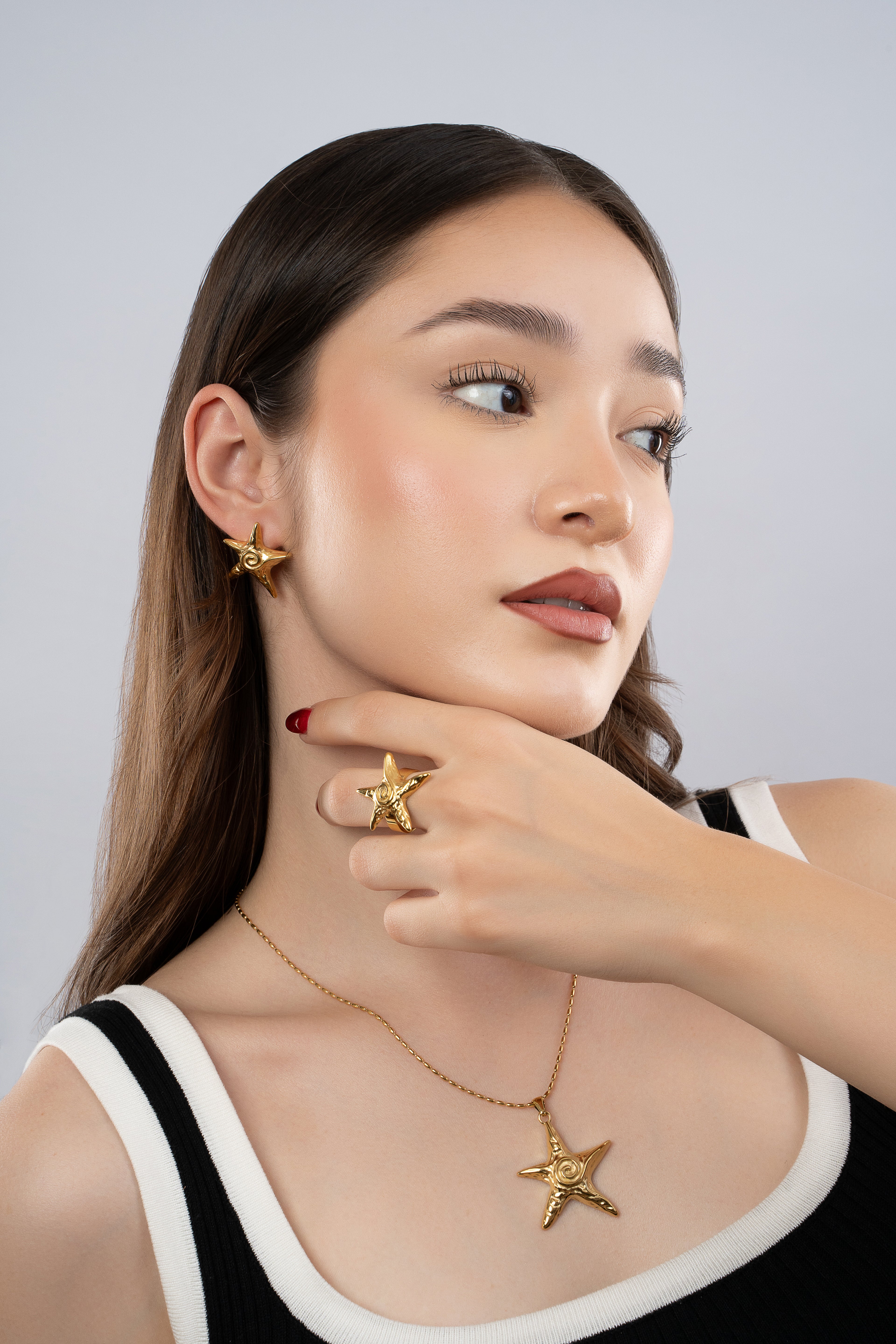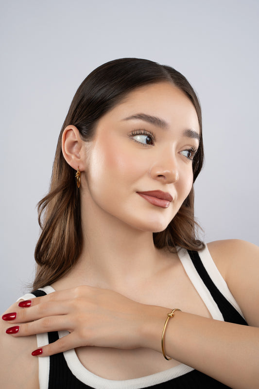 Nuestras joyas están elaboradas con materiales de alta calidad, incluyendo latón y oro de 18k. Cada pieza es seleccionada cuidadosamente para garantizar durabilidad y belleza.